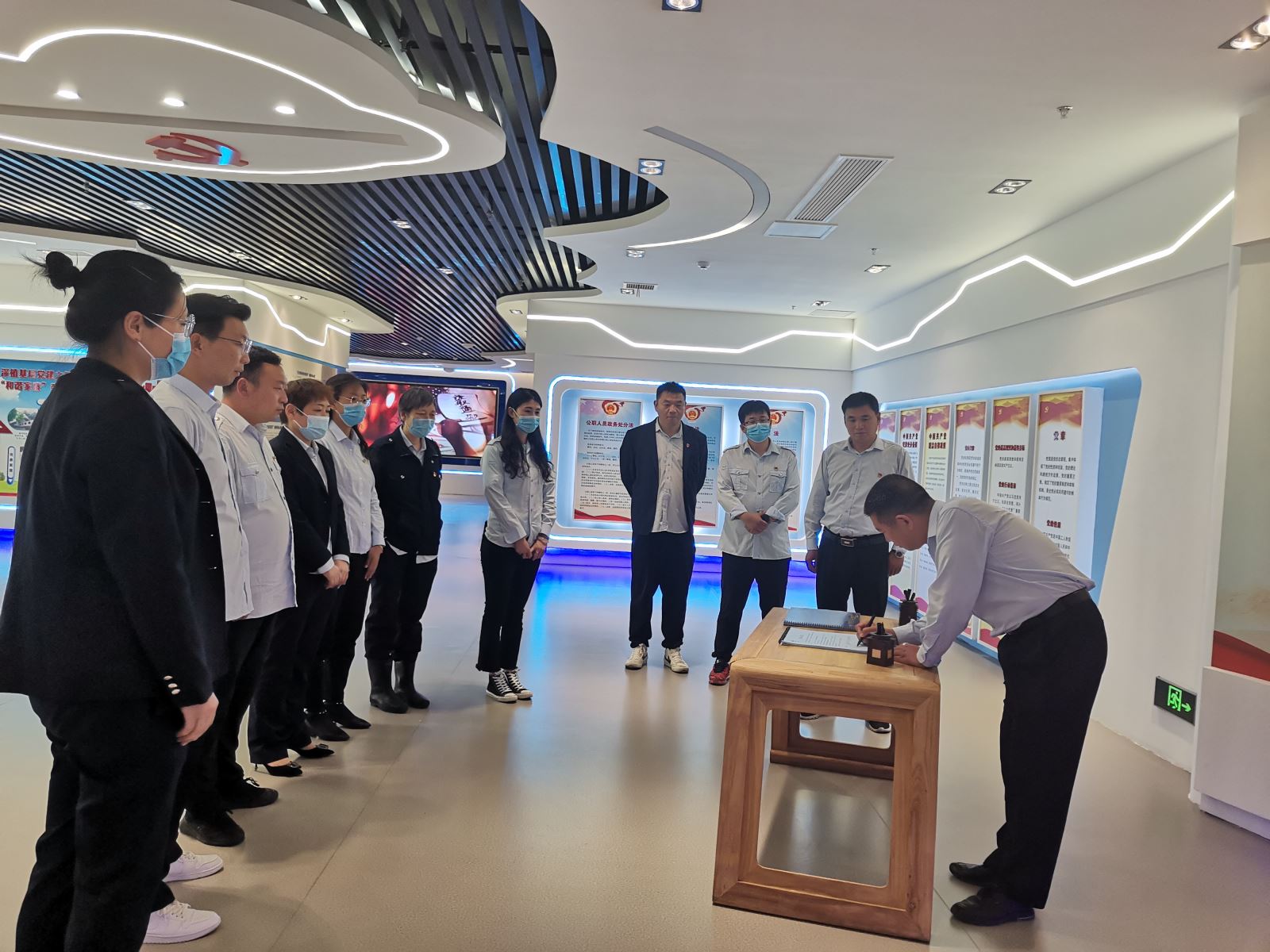 在廉政教育基地,全體人員在工作人員的引導(dǎo)下依次參觀了“清風(fēng)拂面”“警示震懾”“山清水秀”等主題版塊。每個(gè)主題的內(nèi)容分別以圖片、文字、真實(shí)案例等多種形式展示了習(xí)近平總書記關(guān)于加強(qiáng)黨風(fēng)廉政建設(shè)的重要論述、連云區(qū)在反腐倡廉方面的創(chuàng)新舉措及取得的成效。參觀過程中,大家觀看了警示教育專題片;支部書記王浩帶領(lǐng)黨員們重溫了入黨誓詞;最后,全體人員簽訂了廉政承諾書,承諾嚴(yán)格遵守黨紀(jì)法規(guī),認(rèn)真履行“一崗雙責(zé)”,嚴(yán)于律己,時(shí)刻警鐘長鳴。