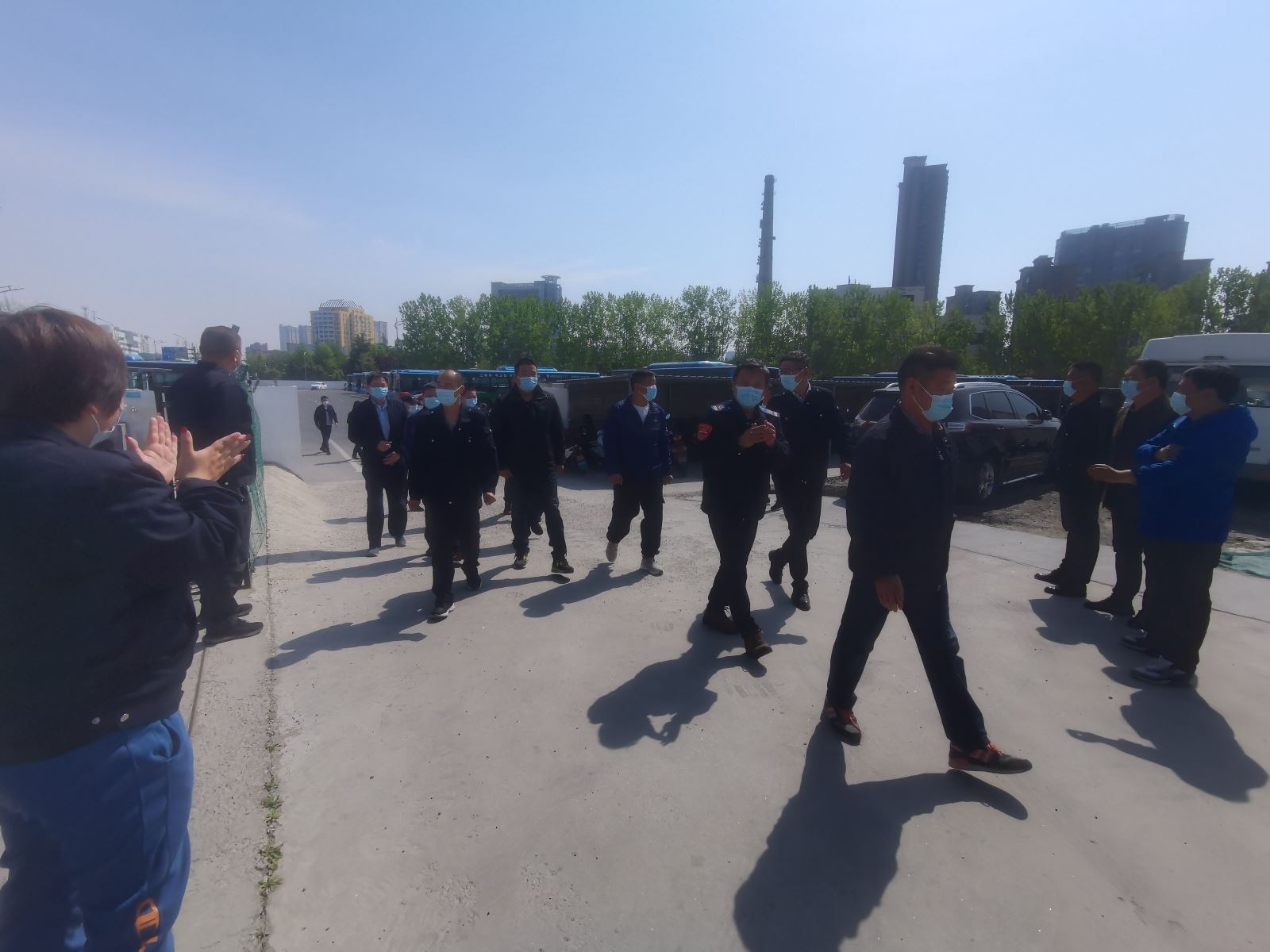 疫情就是命令,防控就是責(zé)任。3月5日疫情突襲港城,公交集團(tuán)公交事業(yè)一部接到上級命令,立即安排60臺車輛運(yùn)力,66名駕駛運(yùn)力參加轉(zhuǎn)運(yùn)工作任務(wù)。不忘初心,不辱使命,4月17日上午,他們平安歸來,公交事業(yè)一部經(jīng)理朱華麗帶領(lǐng)領(lǐng)導(dǎo)班子成員、各科室、分公司負(fù)責(zé)人在財(cái)校停車場熱烈歡迎第一批疫情轉(zhuǎn)運(yùn)的15名駕駛員集中隔離結(jié)束平安回家。