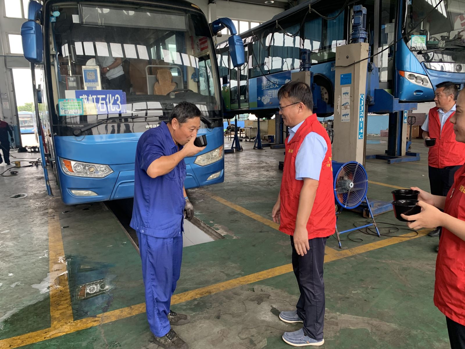 一大早,黨員志愿者們就開始忙活著煮綠豆湯,為了保證綠豆湯酥軟入味,一大鍋綠豆湯熬制了整整兩個(gè)多小時(shí)。11點(diǎn),支部書記許增磊同志和副經(jīng)理蔣衛(wèi)新同志將煮好的綠豆湯分發(fā)給大浦分廠所有修理工,并為他們講解降溫知識,感謝他們無懼酷暑,盡心盡責(zé)地做好運(yùn)營車輛后勤保障工作。并叮囑他們在做好本職工作的同時(shí)一定要注意防暑降溫,關(guān)切詢問他們在工作中遇到什么困難,表示盡最大努力做好協(xié)調(diào),幫助解決工作中的阻力。