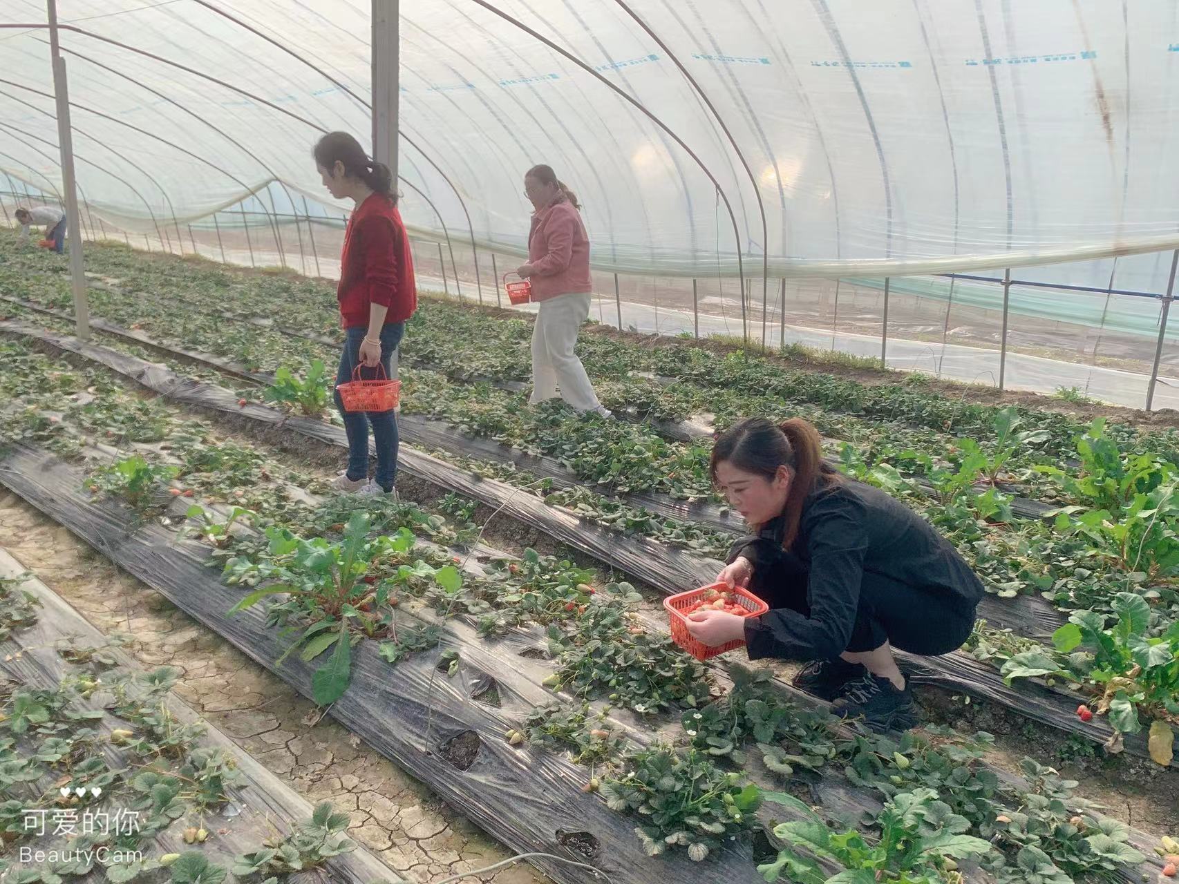 沐三月和風(fēng),覓草莓清香。草莓大棚內(nèi),青草吐綠、草莓飄紅、果香芬芳。在草莓大棚內(nèi)簡(jiǎn)單集合清點(diǎn)人數(shù)后,女同胞們便爭(zhēng)先恐后跨進(jìn)草莓叢中,開(kāi)始采摘之旅。小伙伴們每人提一個(gè)小籃,小心翼翼地走在田壟間,不時(shí)地挑揀、對(duì)比著,說(shuō)笑間,將一個(gè)個(gè)香甜可人的草莓收入自己籃中。大家一邊摘草莓一邊互相交流,充分感受到清新的田園氣息,體驗(yàn)了采摘草莓、品嘗鮮果的樂(lè)趣,陶醉于春意萌動(dòng)的生機(jī)。