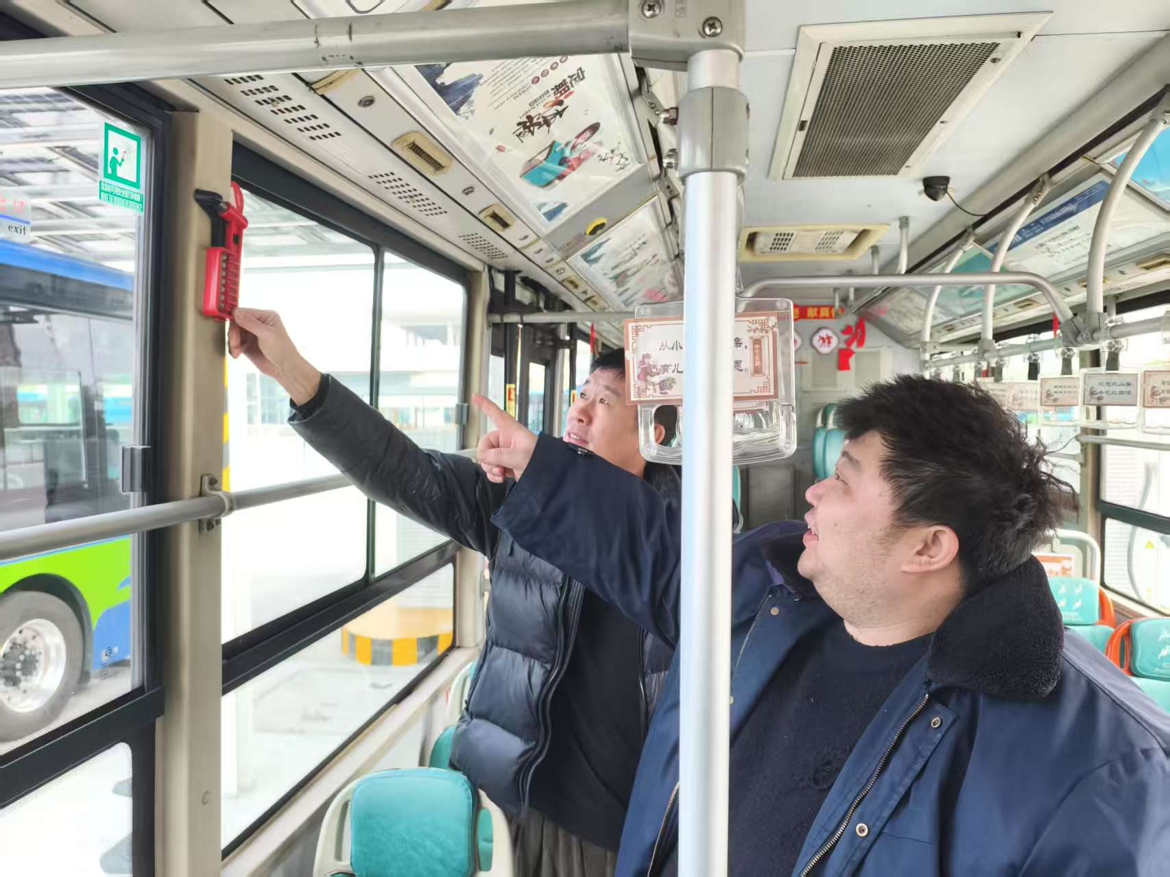 此次檢查工作由分公司安全副經(jīng)理帶隊,帶領(lǐng)安管人員對所屬運營公交車輛的一鍵報警、破玻器、滅火器、破玻錘等安全設施設備進行了全面細致的排查,確保公交車輛安全設施設備數(shù)量充足且性能有效。