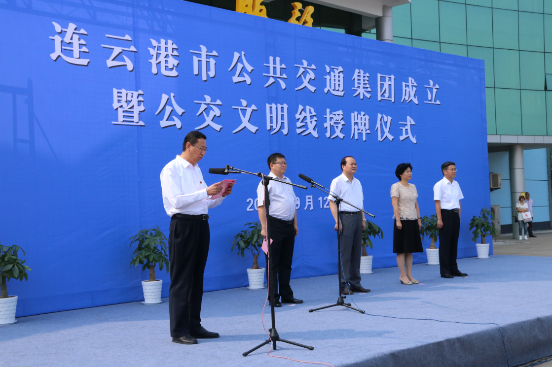 9月12日上午10時(shí),連云港市公共交通集團(tuán)成立暨四條文明線授牌儀式在公交集團(tuán)院內(nèi)成功舉行,標(biāo)志著我市公交事業(yè)發(fā)展進(jìn)入了新起點(diǎn),踏上了新征程。副市長(zhǎng)尹哲強(qiáng)出席活動(dòng)并為市公共交通集團(tuán)揭牌,市財(cái)政局局長(zhǎng)孫宗鳳、市發(fā)改委、經(jīng)信委、國資委、公安局、交通局、國土局、規(guī)劃局、城鄉(xiāng)建設(shè)局、運(yùn)管處、交警支隊(duì)、公安公交分局等市相關(guān)部門負(fù)責(zé)人以及市交通控股集團(tuán)領(lǐng)導(dǎo)、部門及權(quán)屬單位負(fù)責(zé)人、市公共交通集團(tuán)員工代表參加活動(dòng)。市交通控股集團(tuán)黨委書記、董事長(zhǎng)劉永能主持活動(dòng)儀式。