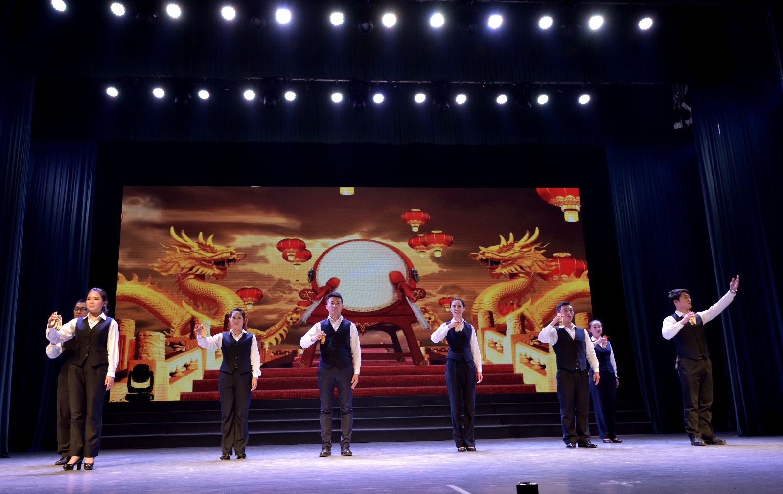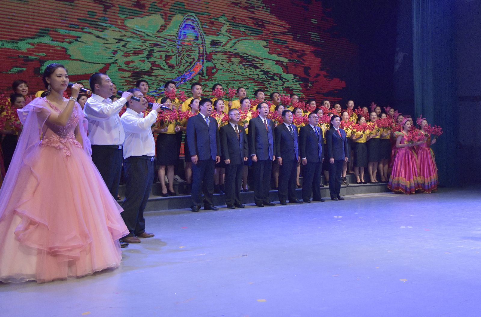 晚會開始前,各基層單位以飽滿的熱情展開了拉歌活動,《學習雷鋒好榜樣》、《團結就是力量》、《咱們工人有力量》等歌曲此起彼伏,各單位有備而來,熟悉的旋律,和諧的歌聲,激情飽滿的演唱,滿場舞動的國旗,高潮迭起,氛圍濃厚。