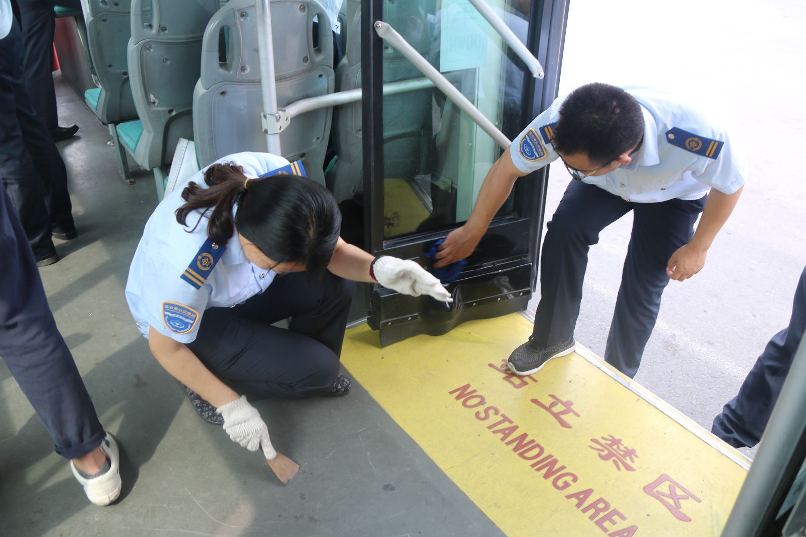 公交快速公司黨支部根據(jù)上級(jí)黨委“關(guān)于組織開(kāi)展紀(jì)念建黨96周年系列活動(dòng)”的文件要求。為增強(qiáng)黨員服務(wù)意識(shí)、改進(jìn)服務(wù)作風(fēng)、提高服務(wù)水平,踐行黨員“微服務(wù)”。6月30日下午,公交快速公司黨支部組織20名黨員志愿者,在海州客運(yùn)站集中開(kāi)展B12線車車廂衛(wèi)生清掃清潔志愿服務(wù)活動(dòng),黨員們用海綿清洗裝飾板上的污垢,用鏟子鏟除車內(nèi)地板上的口香糖,擦洗車頂空調(diào)濾網(wǎng)處等等,不放過(guò)每一處衛(wèi)生死角,積極營(yíng)造真抓實(shí)干的良好氛圍。