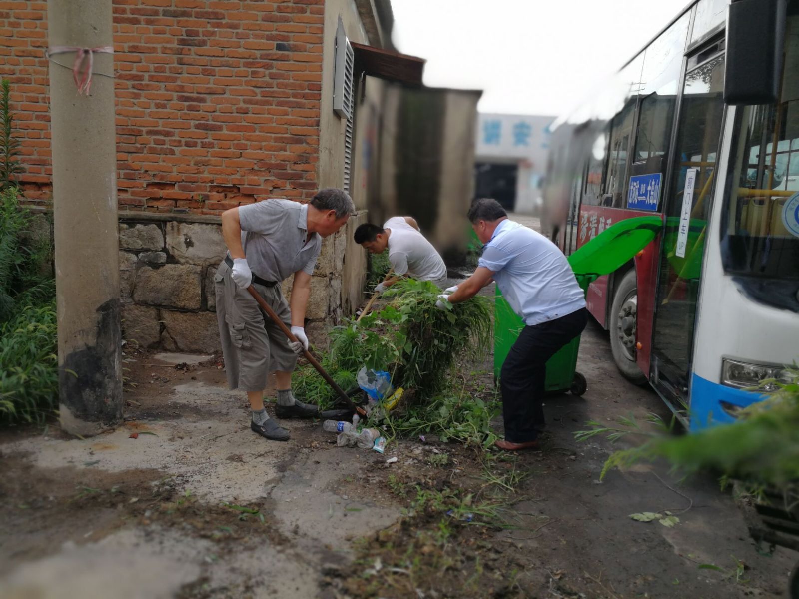 7月20日早上9點,楊國軍帶領(lǐng)幾名修理工,冒著酷暑,將辦公樓至修理車間周圍雜草清理干凈,用實際行動營造良好的創(chuàng)衛(wèi)氛圍。