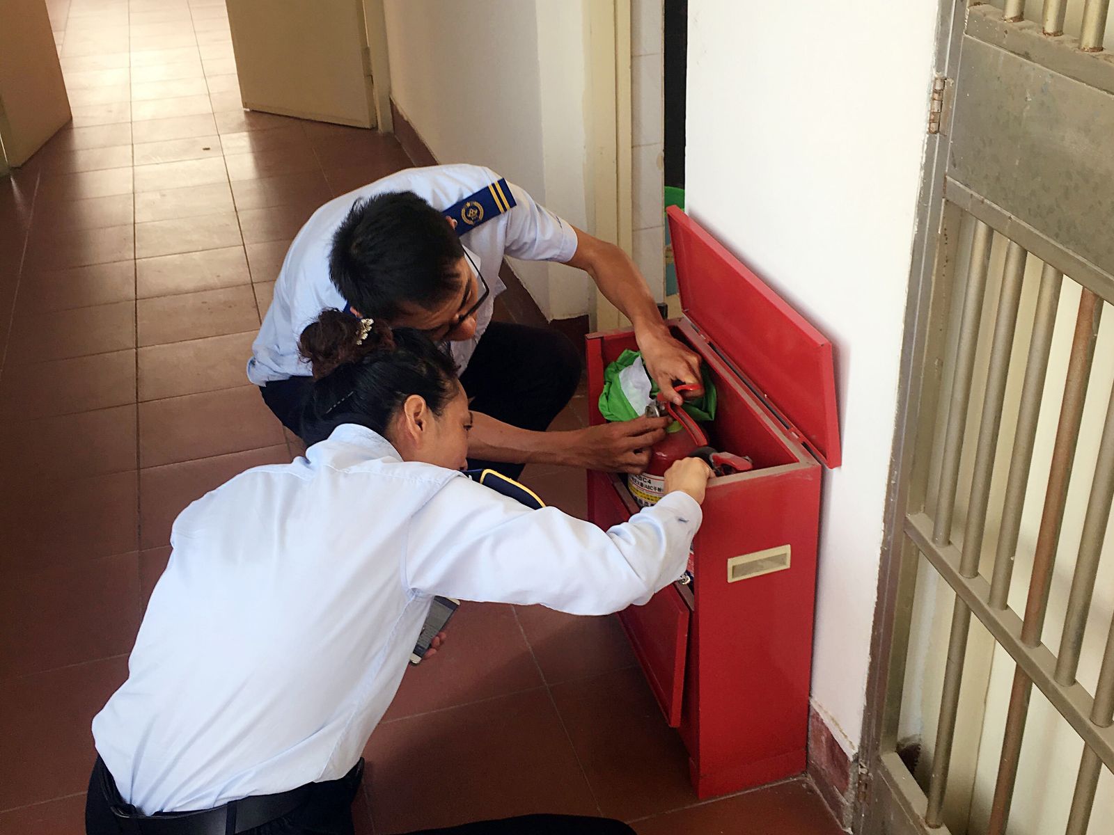 維修公司安全領(lǐng)導小組對轄區(qū)內(nèi)的電線、機械設(shè)備、消防器材、材料庫安全通道以及胎工房輪胎擺放等危險部位開展地毯式檢查。