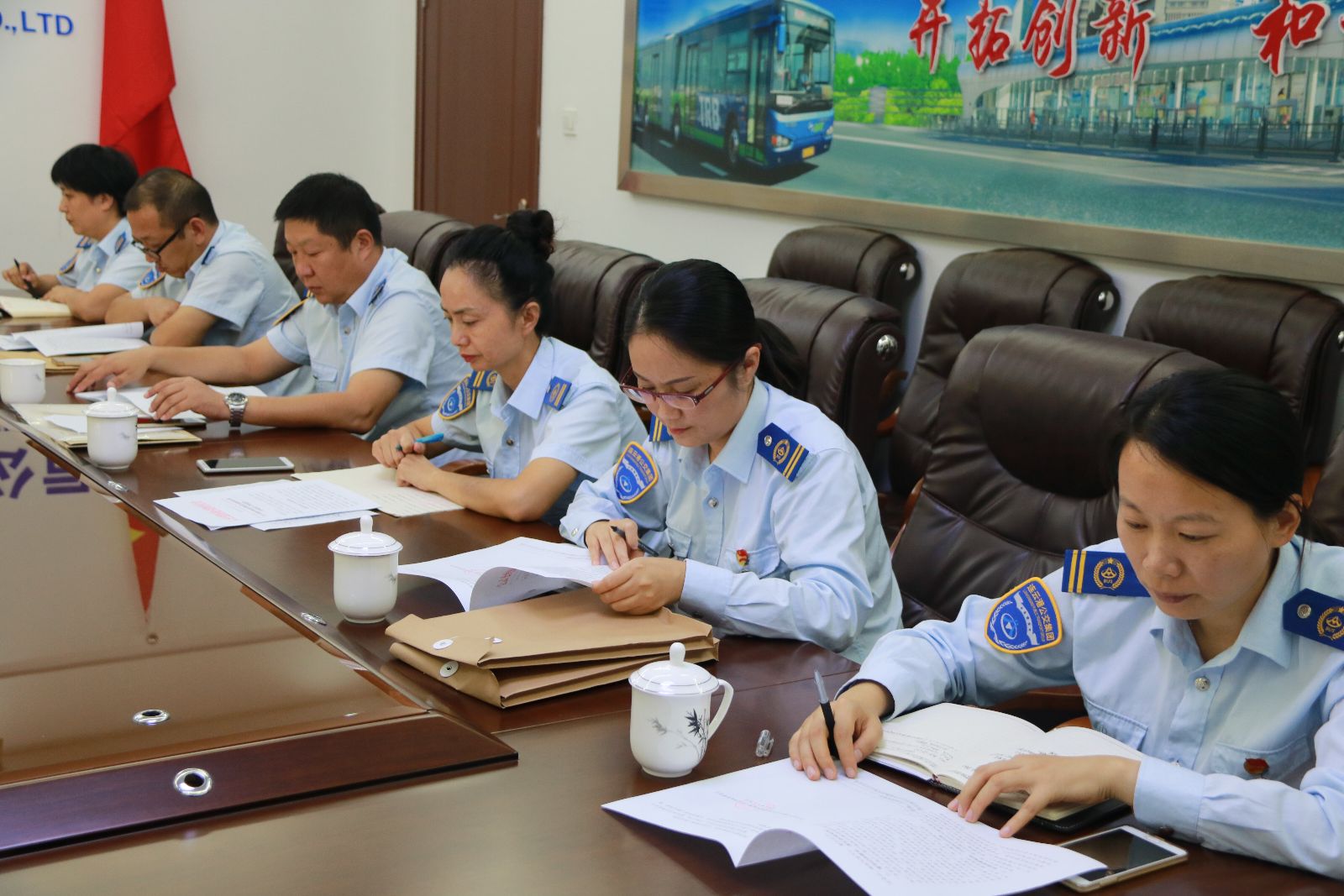 會(huì)上,集團(tuán)黨委書記、總經(jīng)理劉佃華講話,提出三點(diǎn)要求:一是各支部要從嚴(yán)落實(shí)管黨治黨責(zé)任,全面加強(qiáng)黨風(fēng)廉政建設(shè)。當(dāng)前,全面從嚴(yán)治黨越壓越實(shí),對(duì)黨員干部要求更加嚴(yán)格、更加具體,公交集團(tuán)作為窗口和民生企業(yè),各級(jí)黨組織對(duì)黨員干部和職工要教育好、管理好。黨委班子要帶頭嚴(yán)格執(zhí)行中央八項(xiàng)規(guī)定,基層單位從嚴(yán)加強(qiáng)公務(wù)車管理,節(jié)日期間除值班用車外,全部封存。各級(jí)干部加強(qiáng)自身管理,嚴(yán)禁接受職工宴請,作為一項(xiàng)鐵的紀(jì)律,發(fā)現(xiàn)一律作違紀(jì)處理;二是全面做好“國慶”、“中秋”及十九大期間信訪穩(wěn)定和安全生產(chǎn)工作。通過確保“六個(gè)不發(fā)生”,做到“五個(gè)強(qiáng)力推進(jìn)”,實(shí)施“五項(xiàng)責(zé)任追究制度”,維護(hù)集團(tuán)穩(wěn)定。基層黨政領(lǐng)導(dǎo)要“開門接訪”,傾聽職工訴求,做好職工思想感化工作和解疑釋惑。加強(qiáng)安全生產(chǎn)工作,安全生產(chǎn)是公交生命線。做好節(jié)日期間防火防盜和停車場夜間安全管理工作,加強(qiáng)對(duì)職工教育;三是做好節(jié)日期間生產(chǎn)運(yùn)營組織保障工作。“十一”黃金周客流量上升,同時(shí)道路通行壓力增加,要提前研判對(duì)公交生產(chǎn)運(yùn)營的影響,制定應(yīng)對(duì)措施,保障生產(chǎn)運(yùn)營。加強(qiáng)車容車貌和服務(wù)質(zhì)量,展示公交窗口形象,杜絕有責(zé)投訴。營造節(jié)日氣氛,辦公場所和車輛懸掛國旗。節(jié)日前,組織好環(huán)境衛(wèi)生大掃除,以良好的環(huán)境衛(wèi)生迎接節(jié)日和黨的十九大。