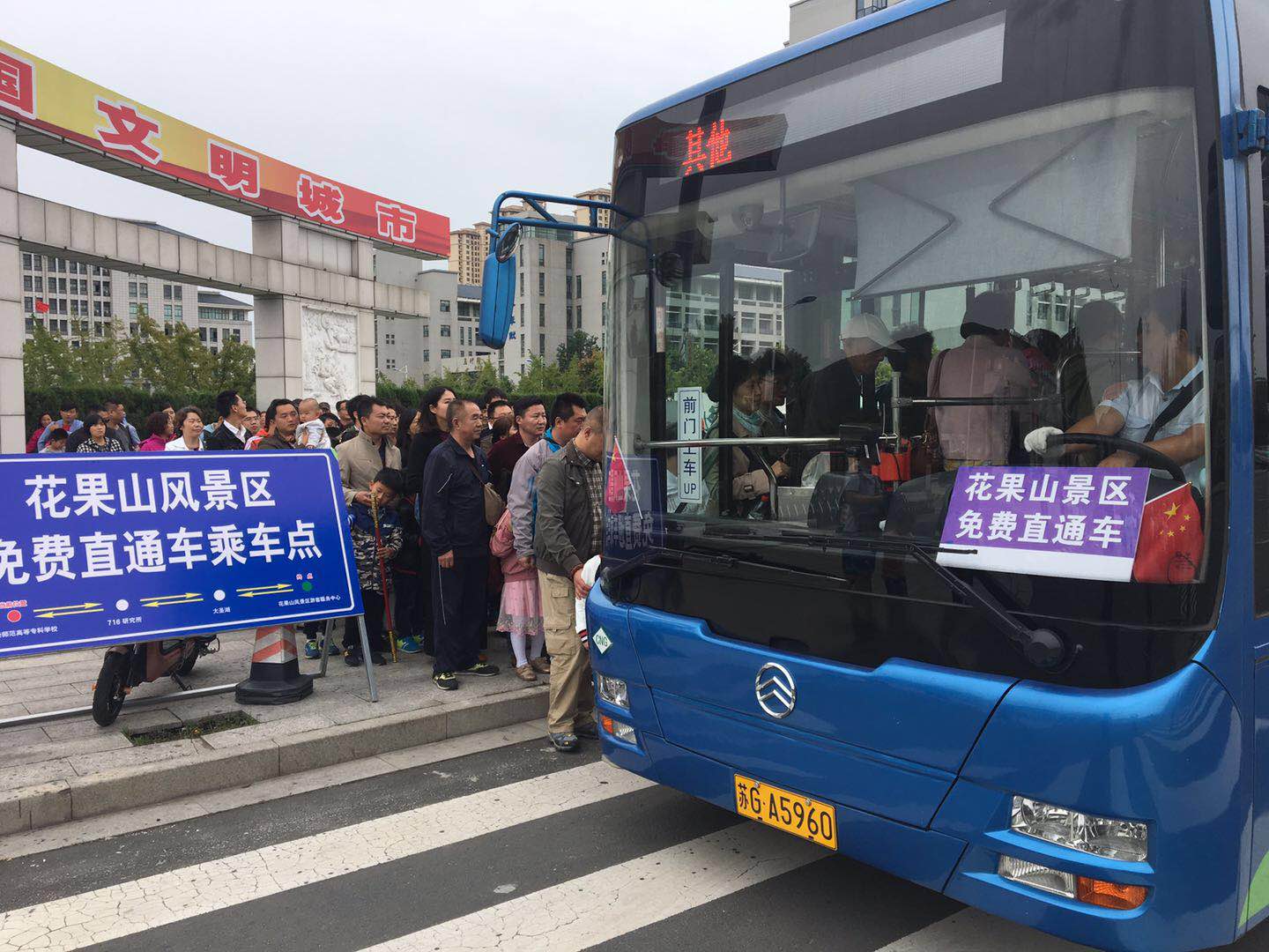 為積極做好雙節(jié)期間車輛優(yōu)質(zhì)服務(wù)工作,確保營運車輛車容車貌整潔,提升公交文明形象,海州公司在每臺運營車輛車頭安插國旗渲染過節(jié)氣氛。在雙節(jié)假期間,雖然有幾天陰雨綿綿,也未擋住游客登高眺遠的步伐,花果山景區(qū)客流人頭攢動,客流較集中。為更好地服務(wù)花果山景區(qū)游客,海州公司運營經(jīng)理江鯉在節(jié)前就如何更好地服務(wù)游客,與花果山園林管理處進行了洽談,最終雙方?jīng)Q定在雙節(jié)假期間,每天計劃安排5臺車開通短駁線——師專至花果山景區(qū)免費直通車。同時,在花果山景區(qū)與師專站點,海州公司安排現(xiàn)場管理人員,進行現(xiàn)場疏導(dǎo)乘客有序乘車。為乘客提供出行信息服務(wù),并結(jié)合現(xiàn)場客流實際,及時與智能調(diào)度平臺溝通,適時調(diào)整班次計劃,確保乘客有序集疏。