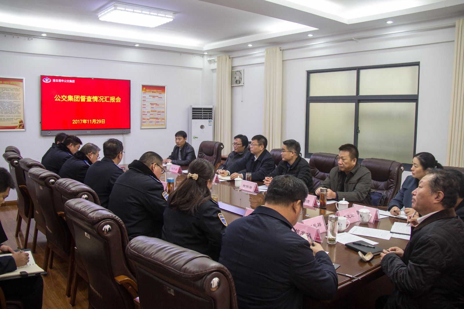 為全面貫徹中國共產(chǎn)黨第十九次全國代表大會精神,全力沖刺全年目標(biāo)任務(wù),11月29日上午,交通控股集團(tuán)黨委書記、董事長劉永能,總經(jīng)理、黨委副書記、副董事長仲偉濤,副總經(jīng)理陳修習(xí),紀(jì)委書記趙潔、黨委副書記陳金師及相關(guān)部室負(fù)責(zé)人到公交集團(tuán)對三季度經(jīng)濟(jì)運(yùn)行分析會貫徹落實情況進(jìn)行督查,公交集團(tuán)領(lǐng)導(dǎo)班子成員參加會議。