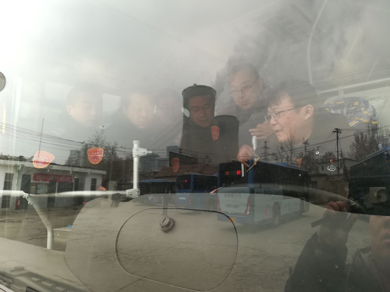 公交集團(tuán)海州公司一車隊(duì)駕駛員利用在站場(chǎng)內(nèi)充電休息時(shí)間交流純電動(dòng)車駕駛心得相互學(xué)習(xí)。