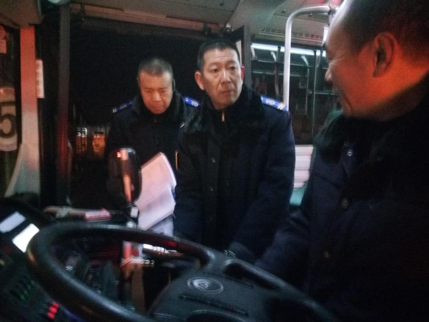 近日,公交集團(tuán)快速公交公司開展了車輛入冬專項檢查,檢查地點在東、西區(qū)車隊,由快速公交支部書記王浩、安全經(jīng)理崔建兵和機務(wù)經(jīng)理聶磊帶隊,兩邊車隊安全員和機務(wù)員參加檢查。此次車輛入冬專項安全檢查,針對冬季天氣寒冷、晝短夜長且霧天較多的情況,嚴(yán)格按照安全生產(chǎn)“七必查”(三證、燈光、手制動、輪胎、監(jiān)視器、消防器材、車容車貌及車輛的破損情況)、 “三漏(漏氣、漏電、漏液)”、電車線束是否磨損以及靜電帶是否接地等進(jìn)行仔細(xì)認(rèn)真的檢查。檢查過程中同時對駕駛員進(jìn)行安全交代,針對冬季行車安全,王浩對駕駛員提出五點要求:一是雨雪天氣駕駛員行駛車輛時注意保持安全車速,做好防滑準(zhǔn)備;二是車輛每天要堅持做到一日三檢,特別是剎車管道防水工作,做好防凍;三是車輛提前預(yù)熱,提前開啟空調(diào),做好乘客服務(wù)工作;四是提醒乘客上下車注意安全,小心滑倒;五是駕駛員要積極做好爭創(chuàng)文明車輛工作,使用文明用語;