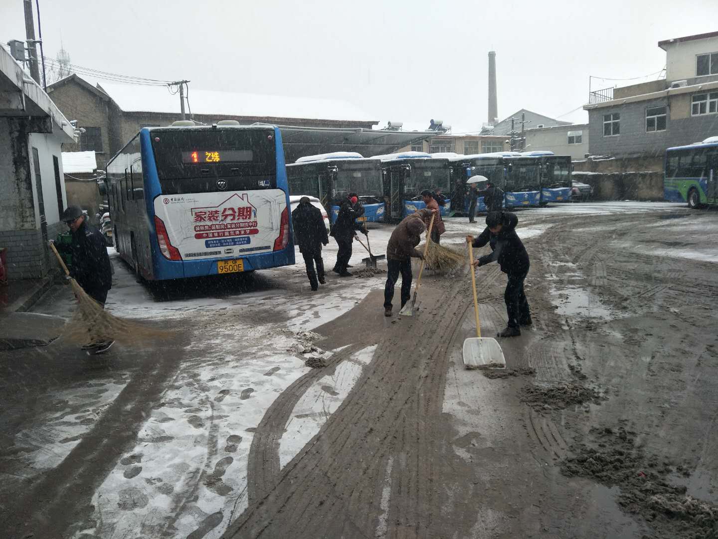 為保證全市公交線路首班車按時準點出發(fā),公交集團生產運營人員全員出發(fā),提前到崗,清掃公交場站內外積雪,為公交車的出行提供便利。