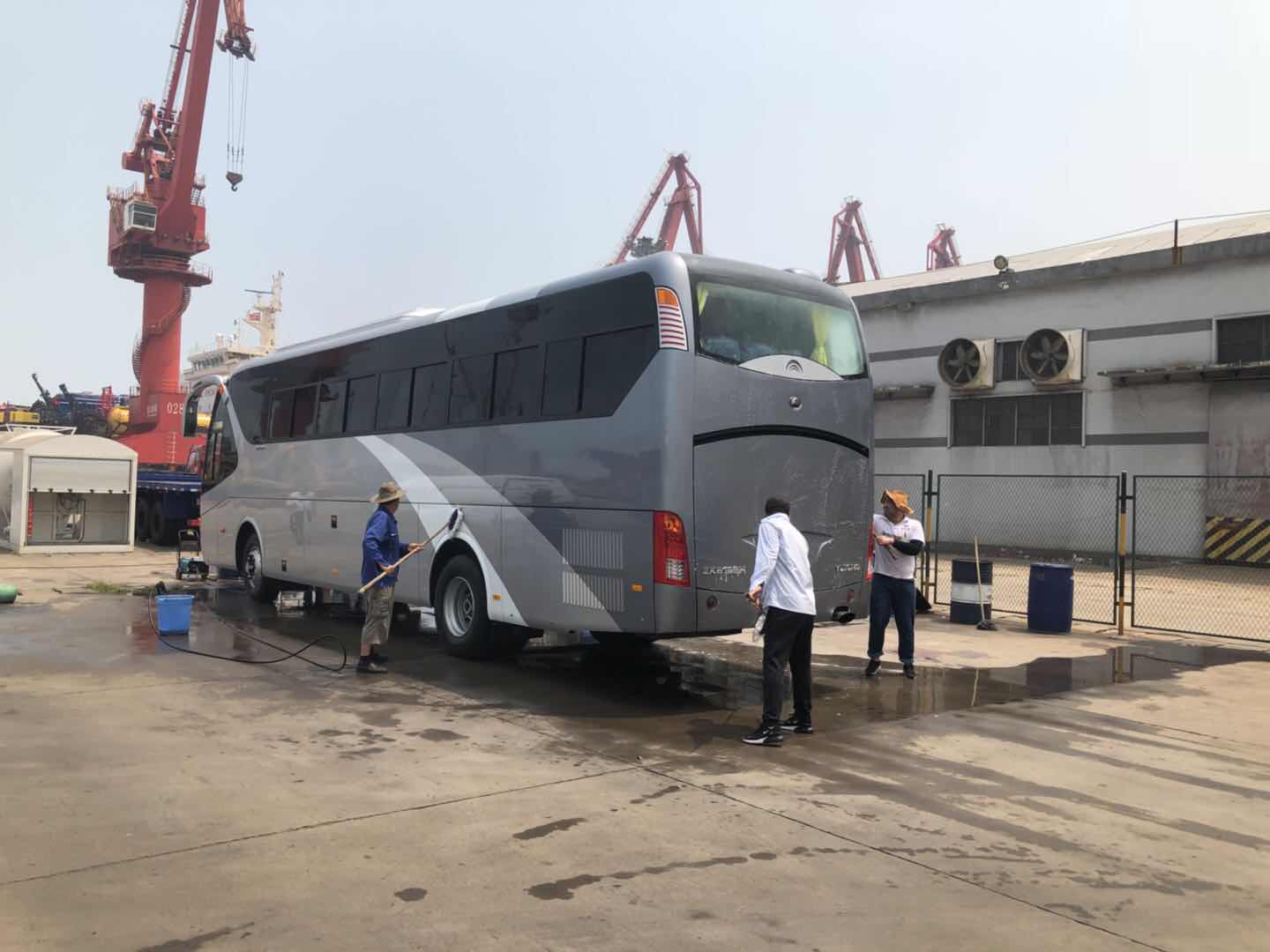臺(tái)風(fēng)過(guò)后,港口地表溫度達(dá)50多度,公交集團(tuán)汽服公司因承接了宇通近100臺(tái)車輛的出口清洗檢驗(yàn)任務(wù),面對(duì)任務(wù)重、時(shí)間緊、標(biāo)準(zhǔn)高的出口要求,為了能按時(shí)保質(zhì)完成此項(xiàng)任務(wù),公交汽服的港口工作人員頂著高溫,穿戴整齊,服從指揮,按部就班的執(zhí)行清洗檢驗(yàn)工作,盡管汗珠浸濕了衣背,高溫天氣并不影響工作人員的工作熱情和工作態(tài)度。公司維修部的人員也在抓緊時(shí)間,緊鑼密鼓搶修出現(xiàn)問(wèn)題的公交車輛,汗水濕透了他們的衣裳,雖然辛苦,但看到公交車又能為乘客的出行提供便利,他們的心里別提有多開(kāi)心了。