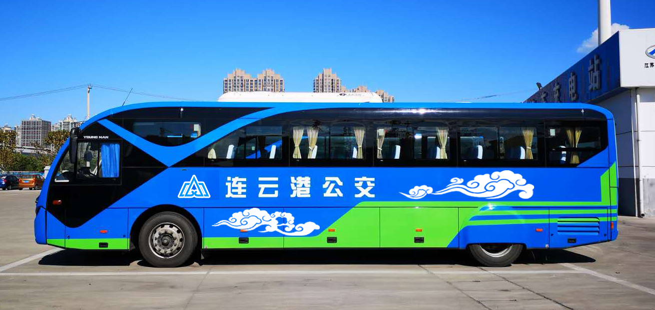 連云港公交車身整體為藍色,代表著大海和廣闊的天空,綠色造型代表海鷗,翱翔在藍天和大海之上;綠色凸顯清新和盎然生機,也表達了綠色公交的發(fā)展理念。祥云是中國傳統(tǒng)的吉祥圖案。碧海藍天、海鷗祥云相得益彰,勾勒出一幅“海鷗飛處祥云追”的祥和畫卷。也體現(xiàn)出現(xiàn)代公共交通服務(wù)民生的和諧美好。