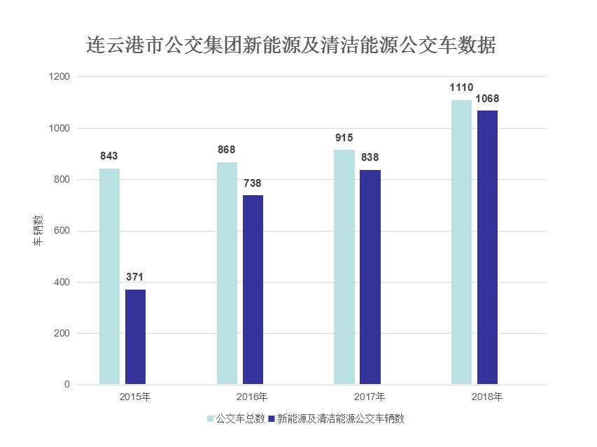 2015年起,連云港市交通控股集團公交集團加快車輛更新步伐,先后購入了1068輛環(huán)保公交車(清潔能源公交車371輛,新能源純電動公交車697輛),淘汰下線黃標車輛566臺,年替代柴油量15988噸,減少二氧化碳排放4.86萬噸,節(jié)能減排效果明顯,新能源以及清潔能源公交車輛占比居全省之首。