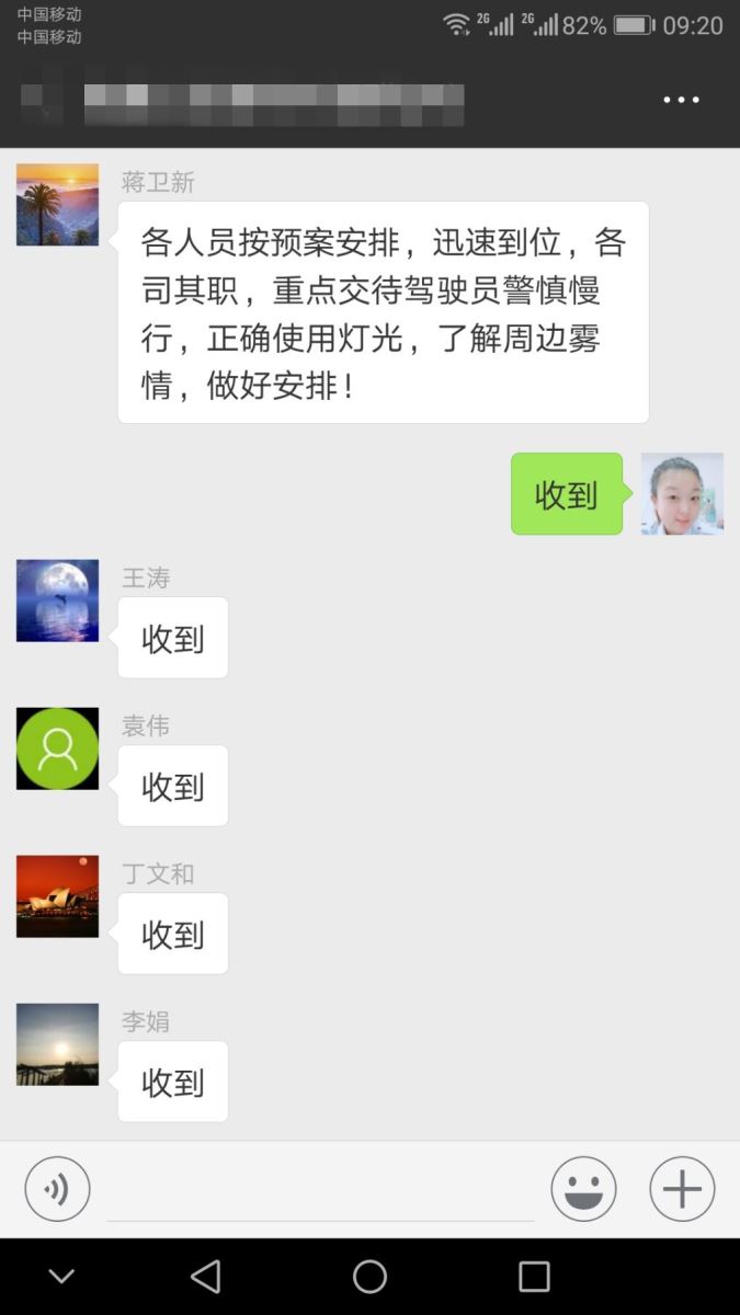 根據(jù)預(yù)案安排,各分公司安排人員提前考察各條重點(diǎn)道路的視野能見(jiàn)度,及時(shí)上報(bào)群里,做到路況信息共享;對(duì)即將出場(chǎng)車輛及時(shí)做出實(shí)時(shí)調(diào)度,霧大的重點(diǎn)線路首班車都有一名管理人員跟車上線運(yùn)營(yíng),做好安全生產(chǎn)交待;天氣情況略微轉(zhuǎn)好后,也不可有絲毫怠慢,管理人員全部提前到崗對(duì)駕駛員進(jìn)行行車安全交待,做到在線車輛平安行駛。