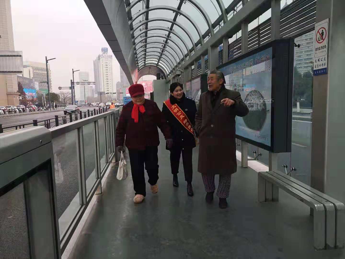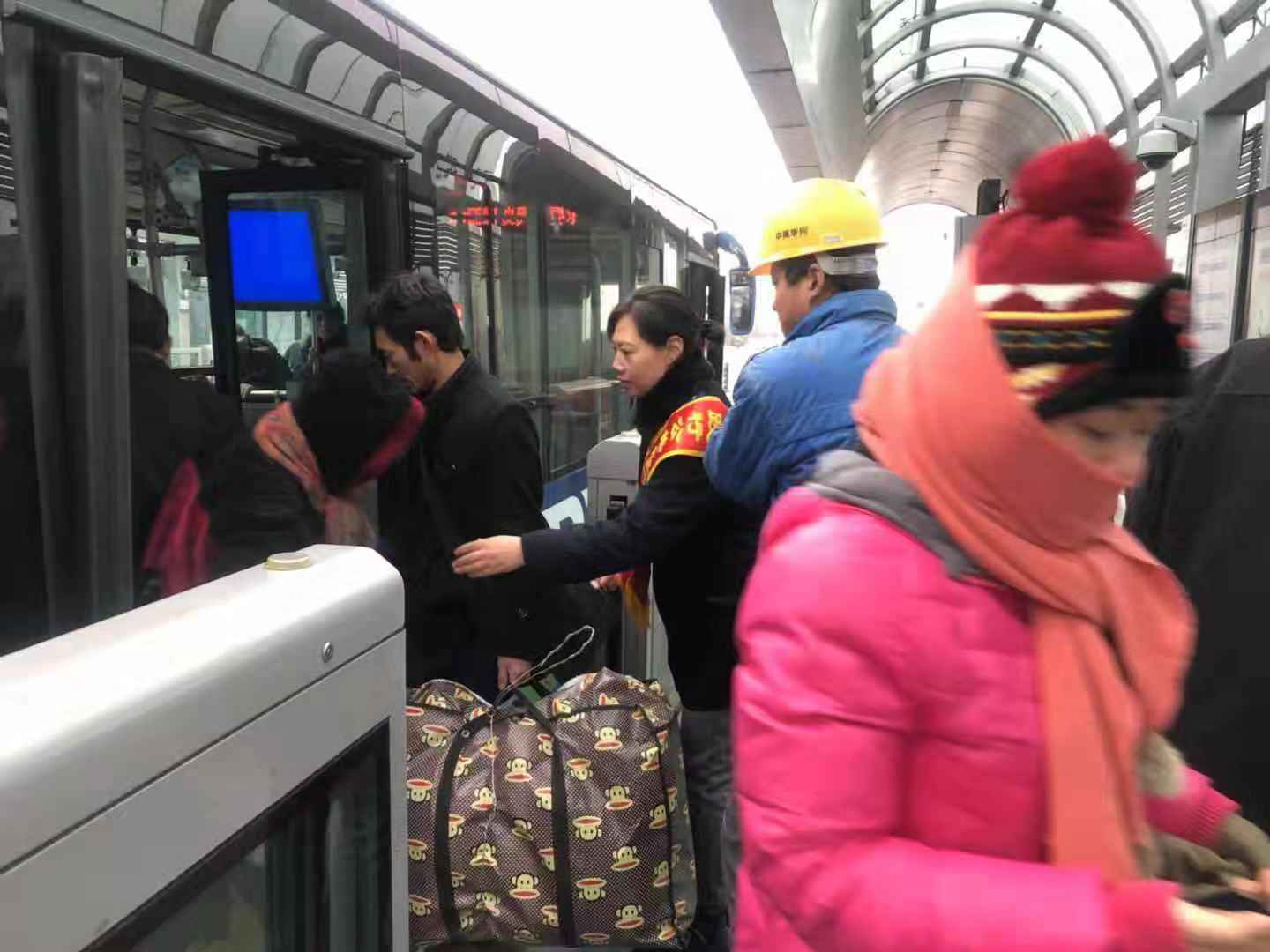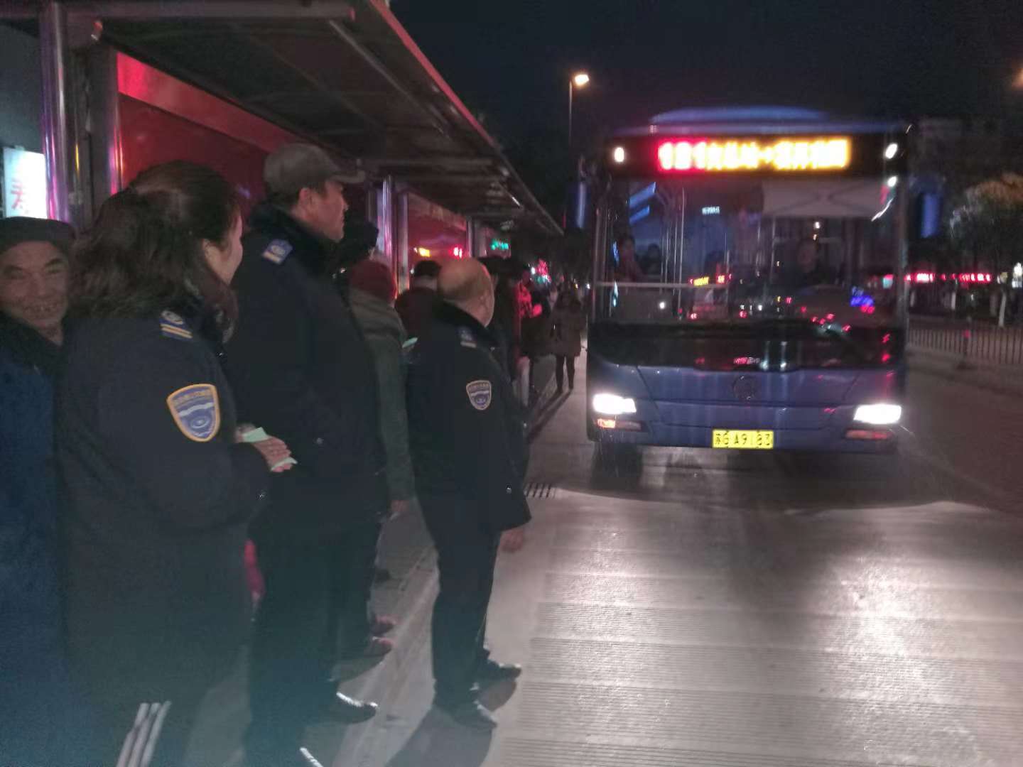 志愿服務(wù)期間,天氣最低溫度達(dá)到了零下7度,12月11日,天空還飄起了雪花,檢查人員不畏嚴(yán)寒,雨雪不改的堅(jiān)守在崗位上,用實(shí)際行動(dòng)助力創(chuàng)文工作的開(kāi)展。志愿者們?cè)谡军c(diǎn)提醒駕駛員著裝規(guī)范、文明用語(yǔ)、禮貌待客,保證車(chē)輛衛(wèi)生整潔,文明行車(chē)。在客流較多時(shí),志愿者們及時(shí)疏導(dǎo)乘客文明乘車(chē),做好文明引導(dǎo)服務(wù)工作,強(qiáng)化市民交通安全意識(shí),還為他們提供轉(zhuǎn)乘咨詢服務(wù),幫助老弱病殘?jiān)械忍厥獬丝陀行虺塑?chē)、搬運(yùn)行李。通過(guò)大家兩天的努力,不僅贏得了市民的支持和認(rèn)可,乘客們有序乘車(chē),也創(chuàng)文工作深入人心。