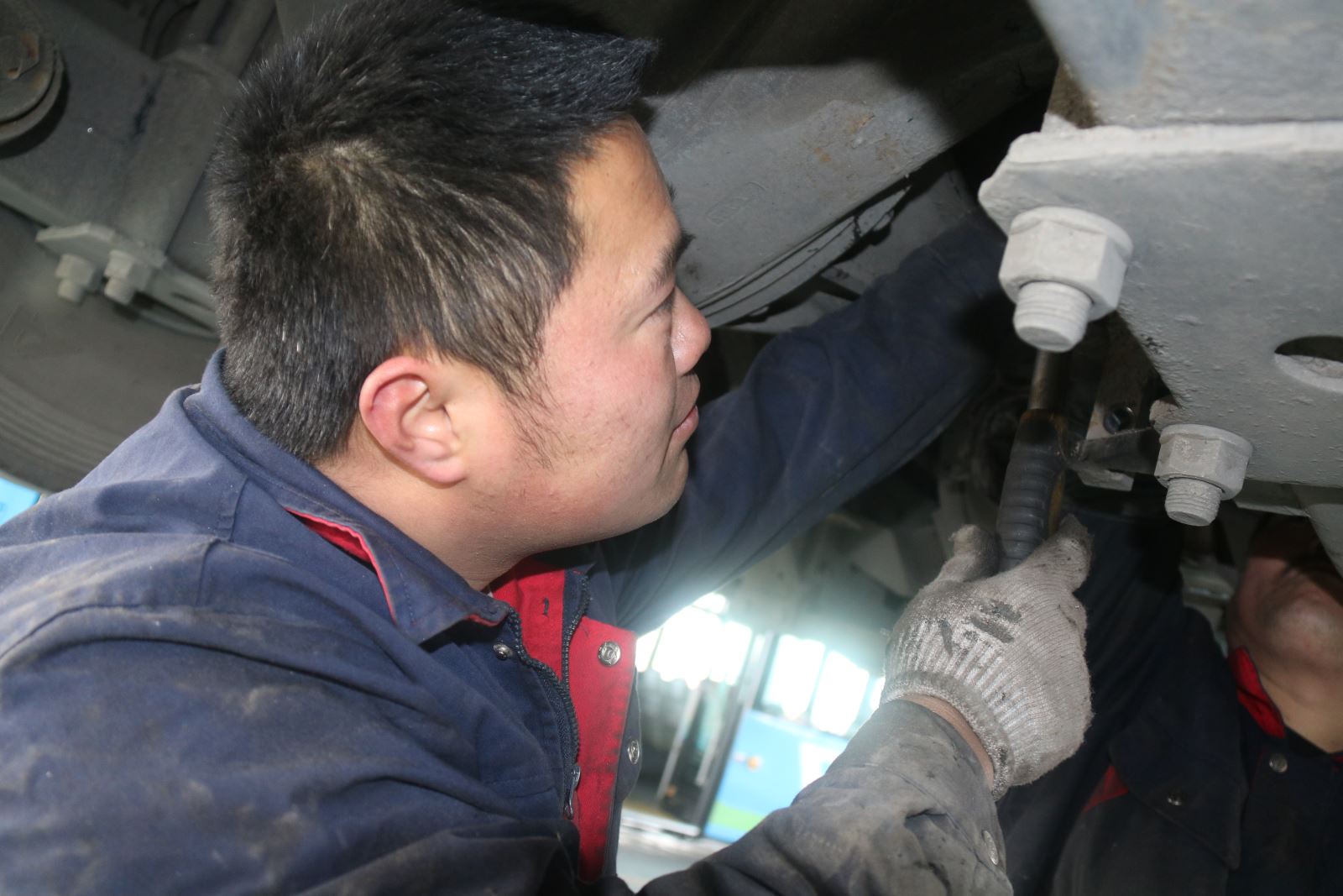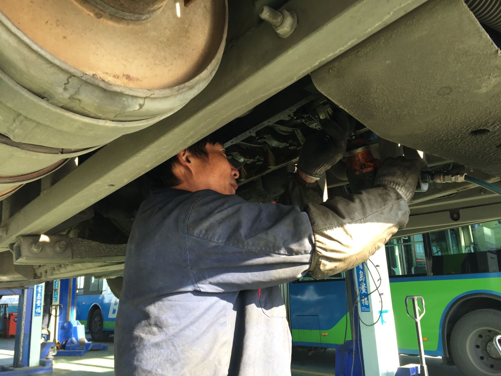 新一年第一天,安機(jī)人員認(rèn)真維護(hù)公交車(chē)輛,見(jiàn)縫插針檢查車(chē)輛的每個(gè)細(xì)節(jié)