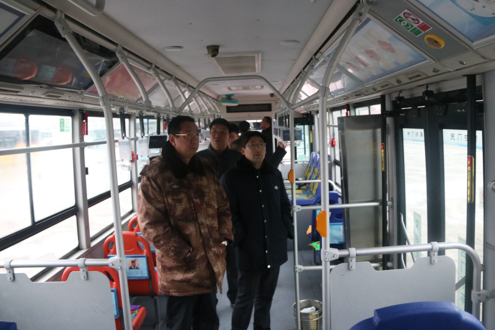 1月12日清晨,公交集團(tuán)黨委書(shū)記、總經(jīng)理劉佃華,副總經(jīng)理羅軍,副總經(jīng)理、工會(huì)主席劉永善、生產(chǎn)運(yùn)營(yíng)部部長(zhǎng)寧濘、安全保衛(wèi)部部長(zhǎng)吳利成等人來(lái)到公交集團(tuán)西城公交總站、江化北路停車場(chǎng)、油廠停車場(chǎng)、華威停車場(chǎng),現(xiàn)場(chǎng)檢查各事業(yè)部的車輛運(yùn)營(yíng)狀況、維修作業(yè)環(huán)境、場(chǎng)站管理和線路班次運(yùn)營(yíng)情況,對(duì)存在的安全隱患,要求現(xiàn)場(chǎng)立即整改。