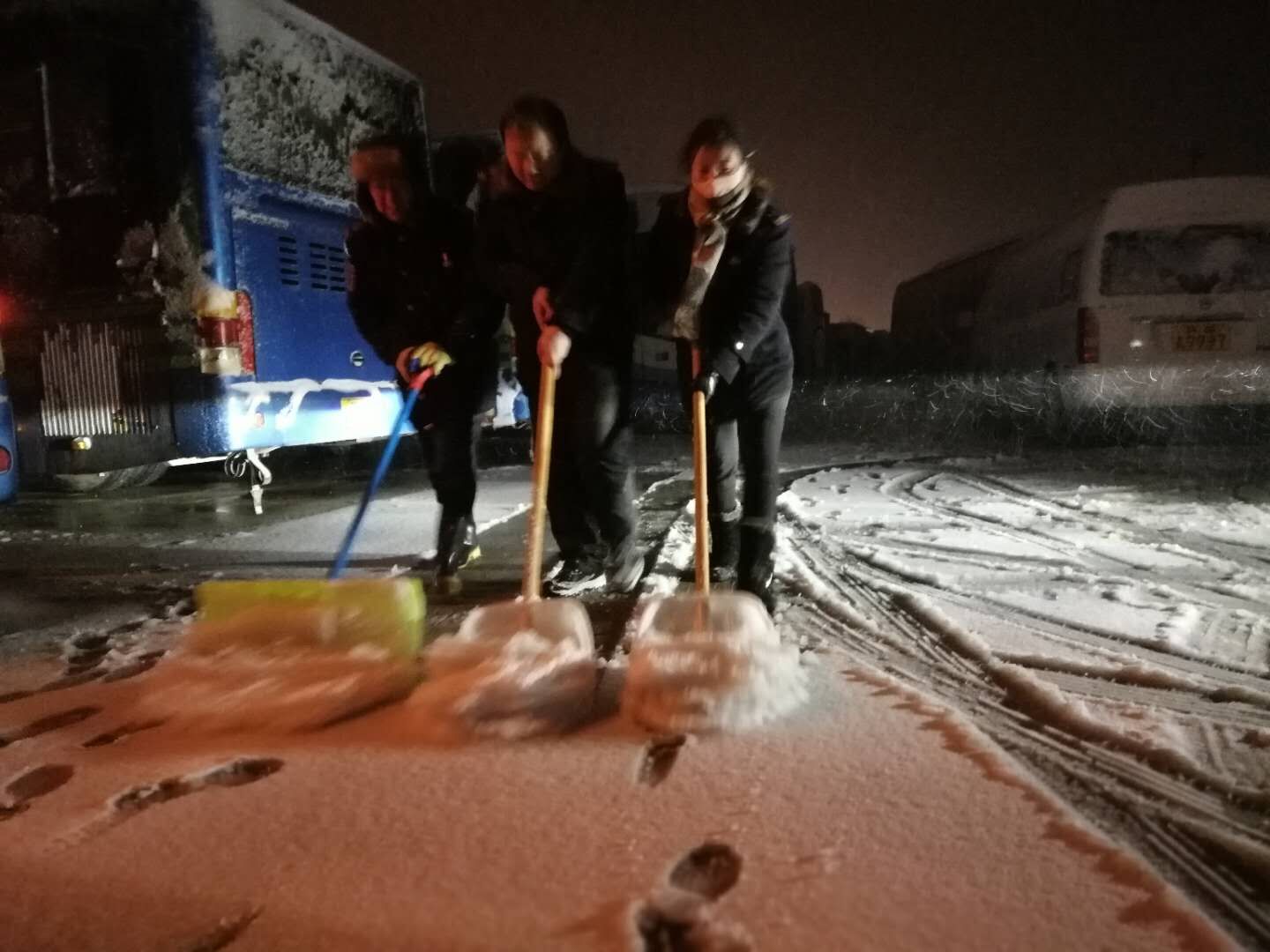 31日凌晨4點左右,公交集團各事業(yè)部領導班子、安管人員嚴格按照惡劣天氣應急預案和突發(fā)事件處置流程的要求奔赴各路段,檢查路面、橋段、涵洞積雪結冰情況,第一時間將道路狀況以電話、視頻、照片的形式反饋至各調度室和駕駛員,方便調整行車走向;全體駕駛員、站務員提前到崗,清理車輛、站臺、場站內的積雪,給車輛預熱,做好發(fā)車前準備工作;各場站相關負責人面對面做好駕駛員安全交代,叮囑駕駛員低速慢行、保持安全車距;運營人員在公交客流密集站、首末站,指揮疏導車輛,協(xié)助維持秩序,加強安全行車現(xiàn)場管理,確保不出現(xiàn)積壓客流的情況。