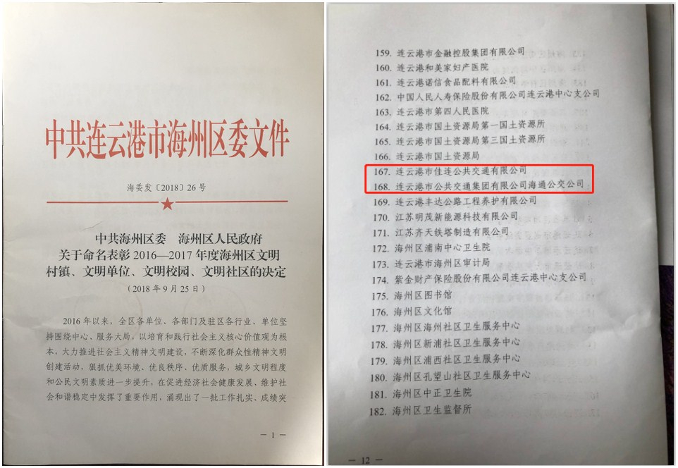 近日,我區(qū)、市文明單位評(píng)選活動(dòng)揭曉,公交集團(tuán)快速公交事業(yè)部、公交集團(tuán)公交事業(yè)一部、公交集團(tuán)公交事業(yè)二部被評(píng)為“2016-2017年度連云港市文明單位”,公交集團(tuán)快速公交事業(yè)部、公交集團(tuán)集團(tuán)公交事業(yè)一部、公交集團(tuán)公交事業(yè)二部、公交集團(tuán)經(jīng)營(yíng)發(fā)展事業(yè)部被評(píng)為“2016-2017年度海州區(qū)文明單位”,受到市委市政府、區(qū)委區(qū)政府通報(bào)表彰,標(biāo)志著公交集團(tuán)精神文明創(chuàng)建工作邁上新臺(tái)階。
