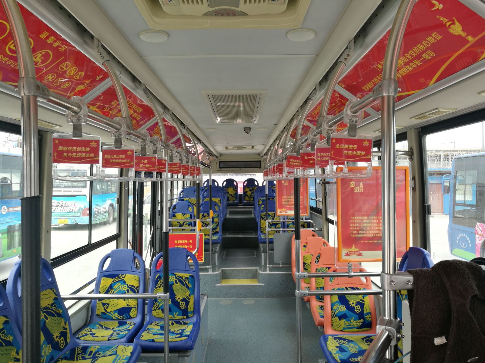 車廂內拉環(huán)、風道展板、車內看板,公交集團公交事業(yè)一部構建全方位、立體式的黨建宣傳模式,借助公交服務品牌的示范引領作用,充分利用公交車廂傳播精神文明及黨的先進性知識,流動的平臺將黨建創(chuàng)新融入到生產經營中,通過定期更新、張貼黨建學習內容,營造“以黨建促品牌、以品牌帶黨建”的良好學習氛圍。周卓文師傅利用班次間隔宣傳黨建知識,并倡導乘客講文明、樹新風,做文明好市民,獲得了乘客一致好評。