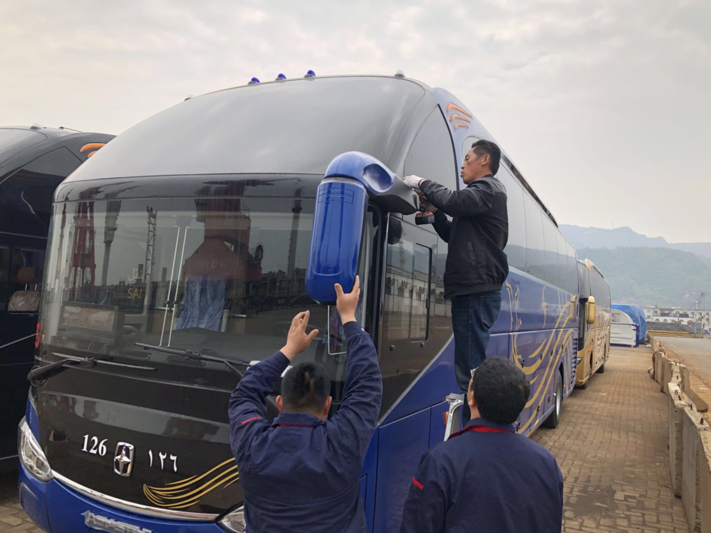 5月21日早上5點(diǎn)鐘,一行18人的突擊隊(duì)趁著朝陽(yáng)升起前準(zhǔn)時(shí)出發(fā)奔赴港口,為完成任務(wù)爭(zhēng)取時(shí)間,中午,大家放棄午休,連軸作業(yè),保質(zhì)保量按時(shí)交付車輛,在大家的共同努力下直到5月26日凌晨4點(diǎn)多終于完成了255臺(tái)高檔車裝船前的整備工作,5月26日晚上7點(diǎn),車輛順利裝船離港。此項(xiàng)任務(wù)的如期完成也受到了外商及宇通客車廠家還有亞星客車廠家的高度評(píng)價(jià)。