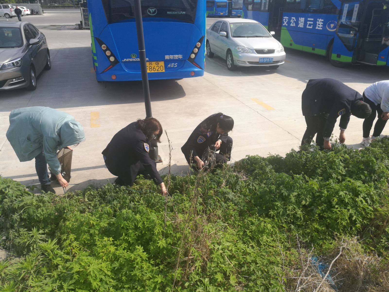 活動現(xiàn)場,公交集團(tuán)經(jīng)營發(fā)展事業(yè)部的志愿者們帶著垃圾袋清理場站各處的塑料瓶、煙頭、廢紙、包裝袋等丟棄物。雜草叢生的深處較為困難,同時(shí)也充滿了蟲蠅等使得清掃工作增加了難度,但是大家都充分發(fā)揚(yáng)了“不怕苦、不怕臟、不怕累”的精神,頂著烈日齊心協(xié)力打掃衛(wèi)生死角等區(qū)域,通過大家的努力,使得場站煥然一新。