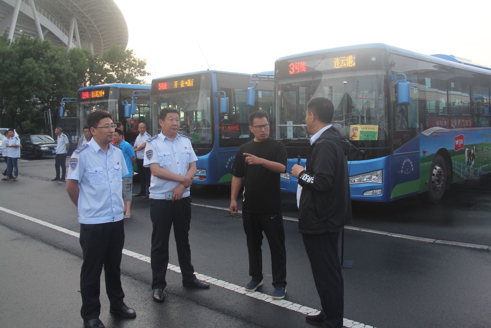 由于當(dāng)天晚上是連云港之夏旅游節(jié)開幕式暨群星演唱會,活動前后客流量巨大,為確保車輛運營安全,將乘客適時疏散到位,公交集團的運營人員們加班加點對車輛進行了機務(wù)、安全綜合檢查,連吃飯時間也是爭分奪秒。集團還制定了多套運營計劃,根據(jù)天氣變化及時調(diào)整車輛班次,防止因降雨造成大量乘客滯留情況的出現(xiàn)。