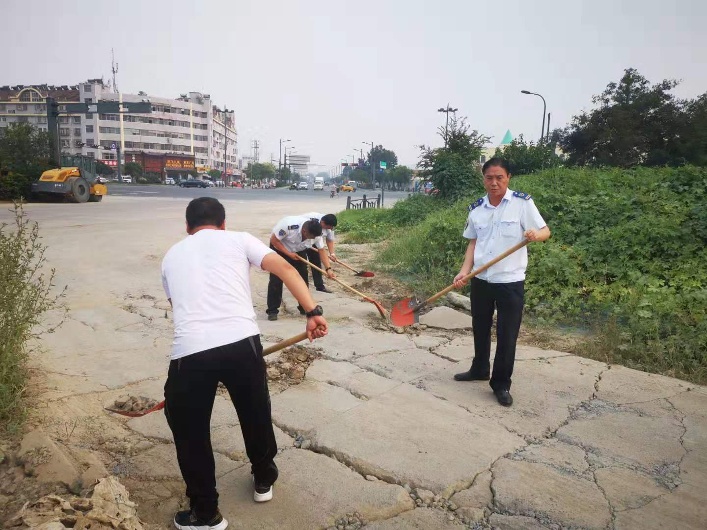 江化北路停車場內(nèi)每天出入公交車輛達(dá)數(shù)百臺次,近日,由于天氣連續(xù)高溫和暴雨的沖刷,導(dǎo)致場站出口處部分路面出現(xiàn)坑槽、沉陷等狀況,對出入公交車輛底盤造成嚴(yán)重安全隱患,也給上下班員工的通行帶來不便。公交集團(tuán)經(jīng)營發(fā)展事業(yè)部佳連分公司經(jīng)理武傳德立刻行動,召集管理人員拿起鐵鍬扥工具修補(bǔ)破損路面,大家將泥土和沙石填置到低洼損壞的路坑中,為提高效率,有的同志甚至摒棄工具,徒手搬運(yùn)磚石和石塊,不到1小時,坑洼的路面被修復(fù)平整。