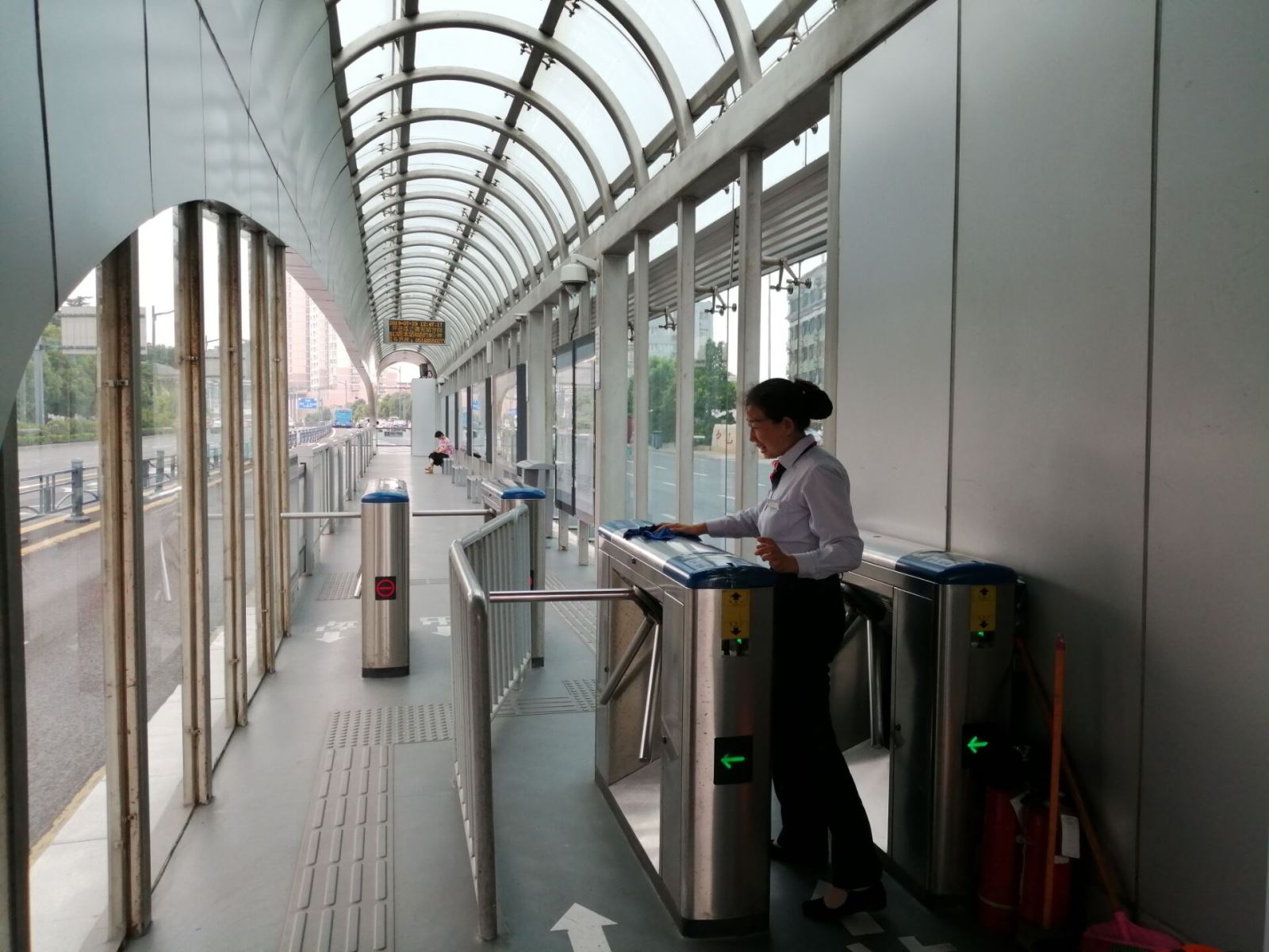 在BRT院前站,有一名80歲左右的老年乘客,幾乎每天都要從站臺獨自乘車往返,每次,老人都會推著一輛手推車,用來放置購買的物品,但進出站時很不方便。只要看到老人,陳新梅就會遠遠的迎上前去,微笑著和老人打招呼:“老人家,今天又出來轉(zhuǎn)轉(zhuǎn)啦?”一邊說著一邊接過老人的手推車,將老人攙扶進站臺。老人的臉上也是從開始的歉意到后面拉著陳新梅的手說:“閨女,你上班啦,今天又麻煩你啦。”陳新梅都會笑了笑說:“不麻煩,沒事,誰還能不老?。?rdquo;