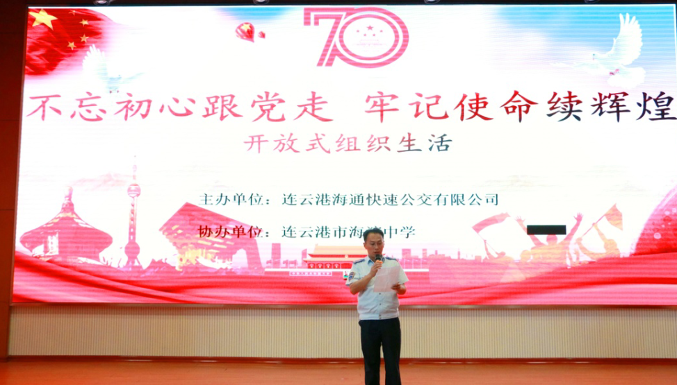 近日,公交集團(tuán)快速公交事業(yè)部在市海濱中學(xué)召開“不忘初心跟黨走,牢記使命續(xù)輝煌”專題組織生活會(huì),支部書記于亮、領(lǐng)導(dǎo)班子成員、黨員以及部分職工代表、海濱中學(xué)部分黨員干部參加了本次會(huì)議。