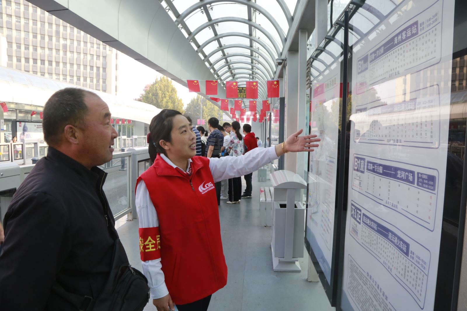 國慶期間,公交集團給海州站、龍河廣場、購物中心等十三個BRT站臺配備雙班站務員,同時配備手持金屬檢測儀,對乘客是否攜帶違禁品進行準確掃描。另外,我們還為每個換乘站配備了一名穿工作服佩戴紅袖章的安全員,協(xié)助站務員對乘客攜帶可疑包裹、物品進行檢查,對可疑人員進行詢問,杜絕危險品進站上車,進一步提高BRT站臺的安全等級。
