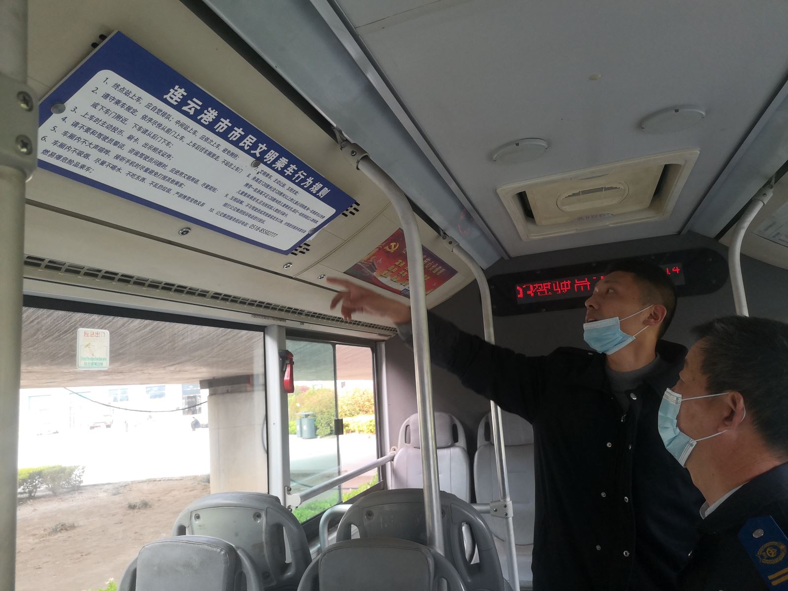 此次檢查由公司經(jīng)理助理張作、周健帶領(lǐng)分公司管理人員分別到園丁小區(qū)公交場站、海濱大道首末站開展創(chuàng)文綜合大檢查。此次檢查分兩大部分:一是對場站環(huán)境、辦公室場所進(jìn)行專項(xiàng)檢查。二是對運(yùn)營車輛的衛(wèi)生、創(chuàng)文標(biāo)識、服務(wù)證件及駕駛員著裝、是否規(guī)范操作等開展專項(xiàng)檢查。檢查人員發(fā)現(xiàn)場站內(nèi)有少許煙頭和樹葉等垃圾,部分管理人員辦公室較凌亂,車輛車廂空調(diào)出風(fēng)口、駕駛區(qū)域、發(fā)動(dòng)機(jī)倉還存在衛(wèi)生死角,另現(xiàn)在天氣早中晚溫差較大,部分駕駛員著裝不規(guī)范,檢查人員都認(rèn)真做好記錄,能現(xiàn)在整改的立即現(xiàn)場整改,不能整改的要求限期整改。