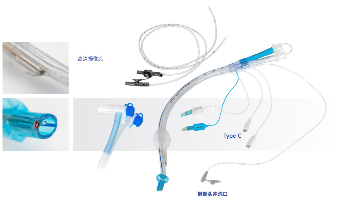- 高清攝像頭,可清晰顯示患者口腔、咽喉情況,精準定位,方便術中觀察整個氣道。 持續(xù)可視化能夠在整個單肺通氣過程中實時跟蹤插管位置和患者氣道